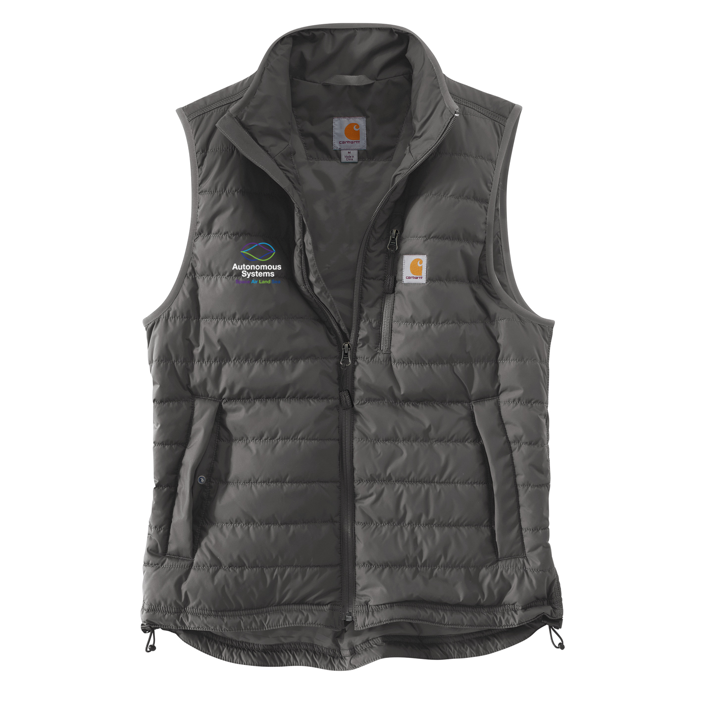 - Carhartt label sewn on chest pocket