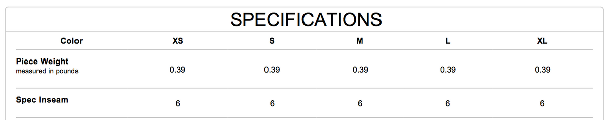 8" inseam Adult, 6" inseam Youth